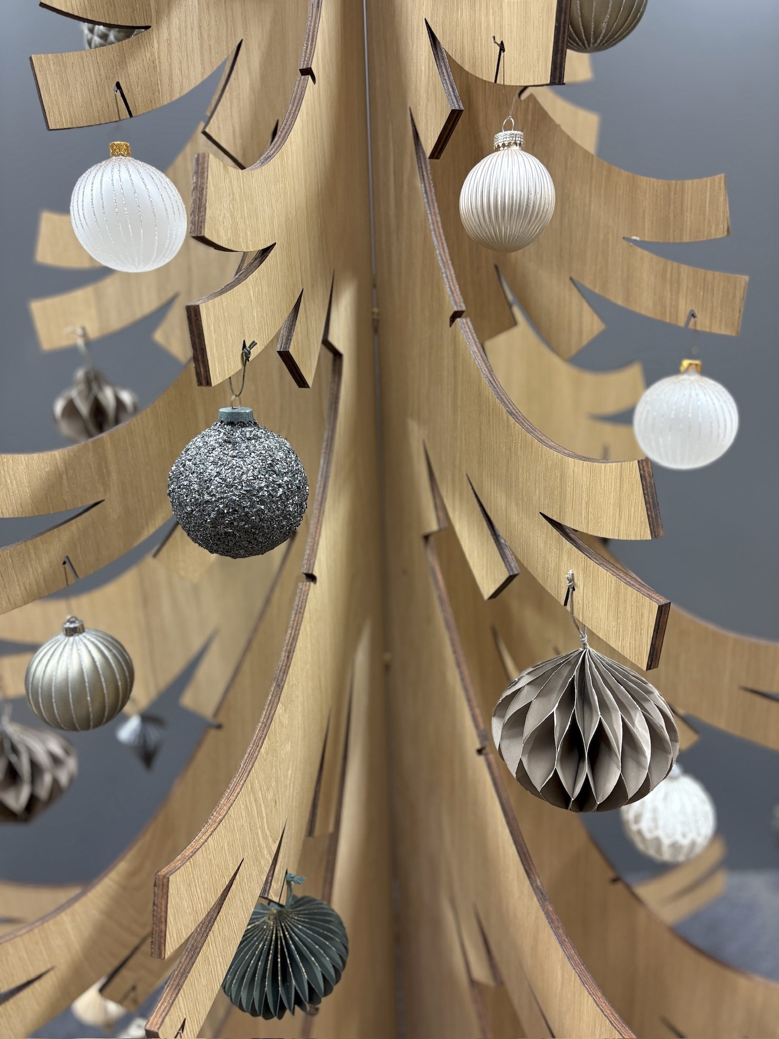 Mit seinem verspielten Design ist unser Modell Nr. 3 der Romantiker unter den Holzweihnachtsbäumen. Die einzelnen Teile sind organischer ausgestaltet und bieten noch mehr Platz für Christbaumkugeln & Co.